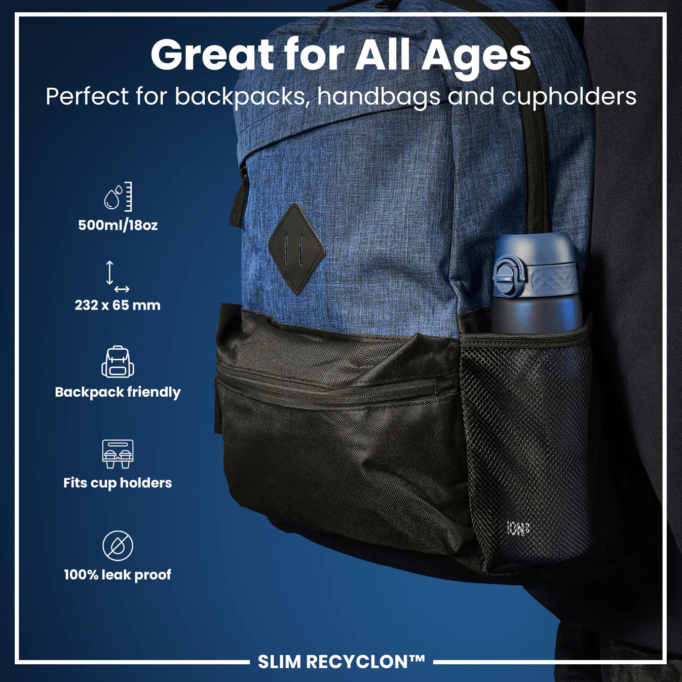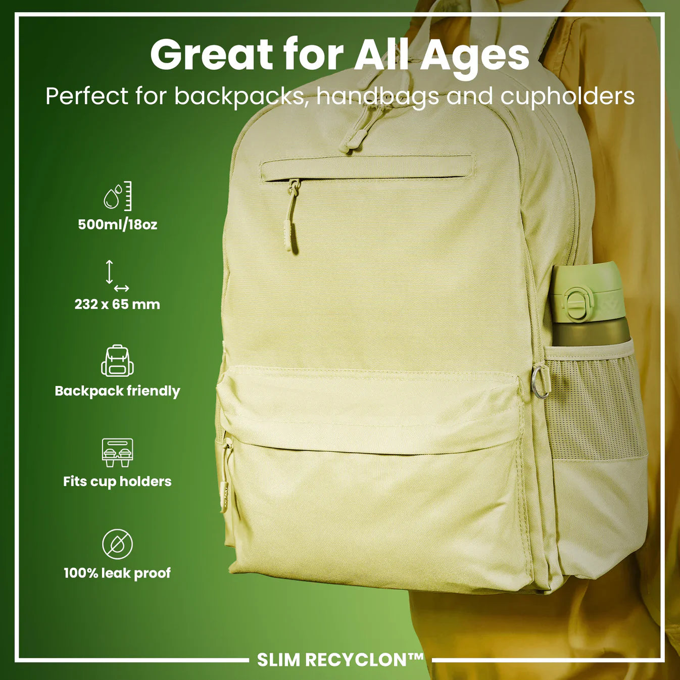 100% leak proof 500ml / 17oz BPA free sport water bottles with a smooth flow for spill-free hydration and hygienic full-flip top cover for one handed use on-the-go.