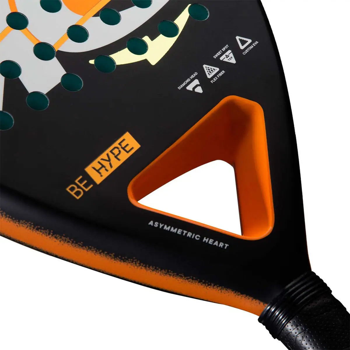 The BE HYPE is a racket for players who are growing in the padel court. It is designed to be easy to handle and provides all the facilities for the player to improve their game. Its diamond shape makes attack shots more effective and consistent. The asymmetric heart of the BE Hype optimizes the weight distribution in the racket, thus improving maneuverability and stability with each hit.