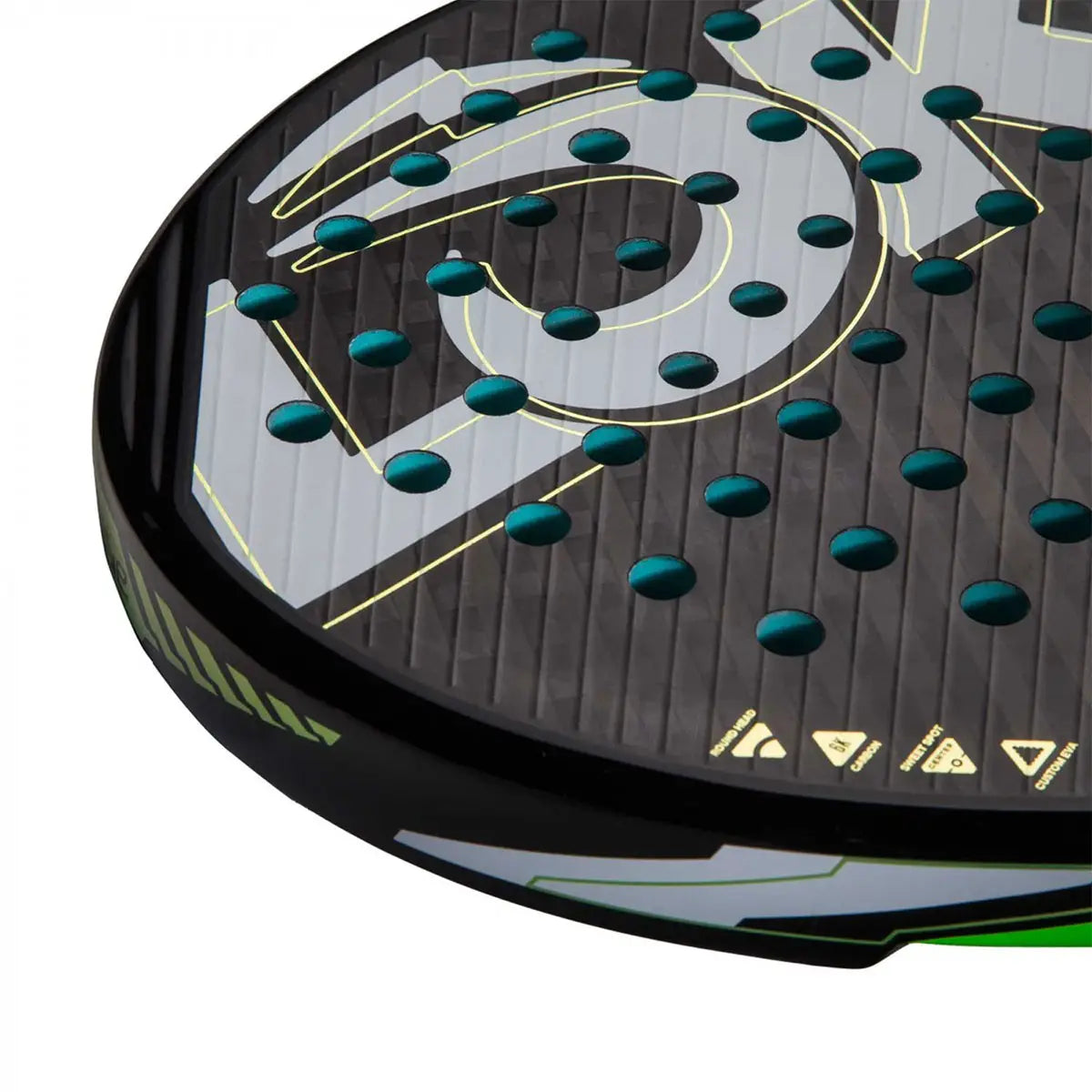 This racket stands out for its carbon reinforcement technology, which involves the strategic incorporation of additional carbon layers at key points of the frame. These reinforcements not only increase the stiffness and durability of the racket but also enhance energy transfer with each strike, resulting in greater power and stability on the court. It also features a Dynamic Holes System, a progressive arrangement of holes with different sizes that enhance the power of the strike.