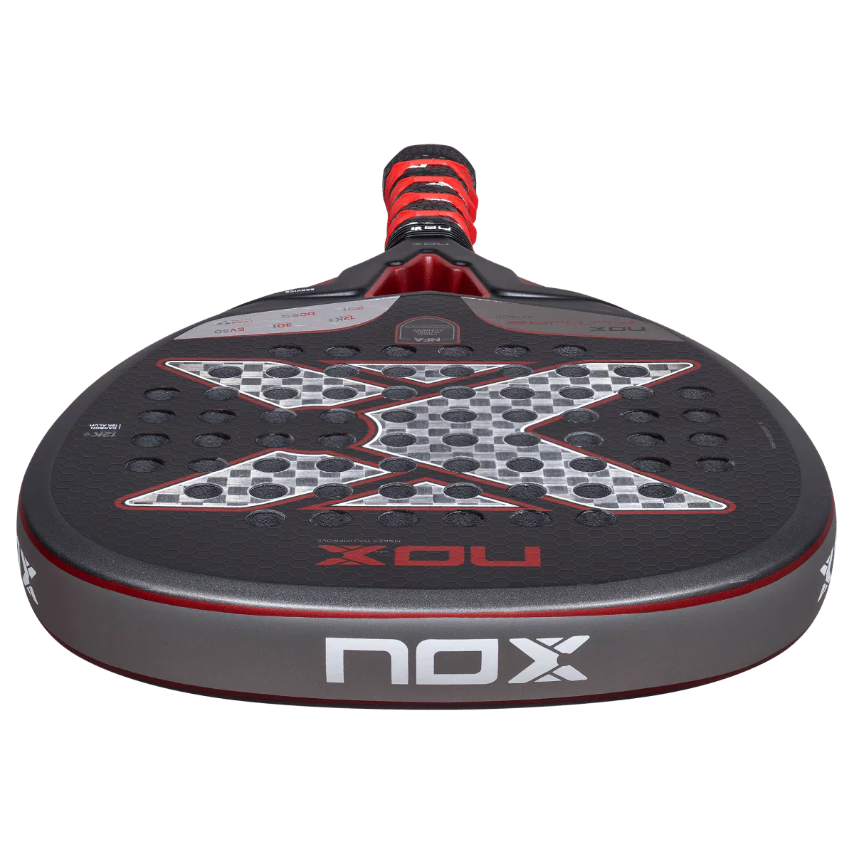 It incorporates the patented NOX Custom Grip® technology, certified by Testea Padel to increase grip and reduce vibrations.