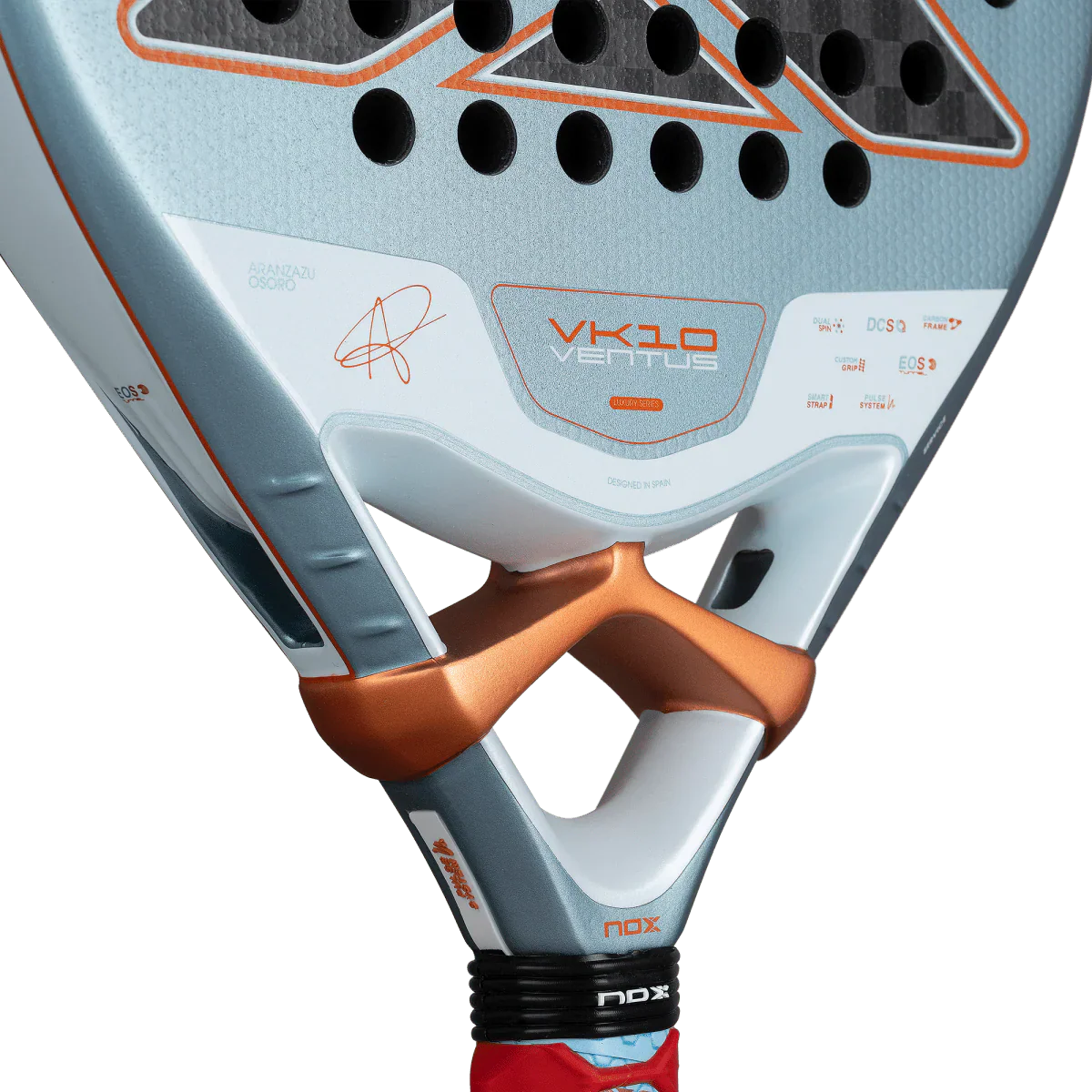 The VK10 Ventus 12K Control, designed in collaboration with Aranzazu Osoro, is designed for players who fight every point with intensity and seek to dominate the court with intelligence and precision. It features the new mould from the 2026 Luxury racket collection, which improves aerodynamics and overall performance.