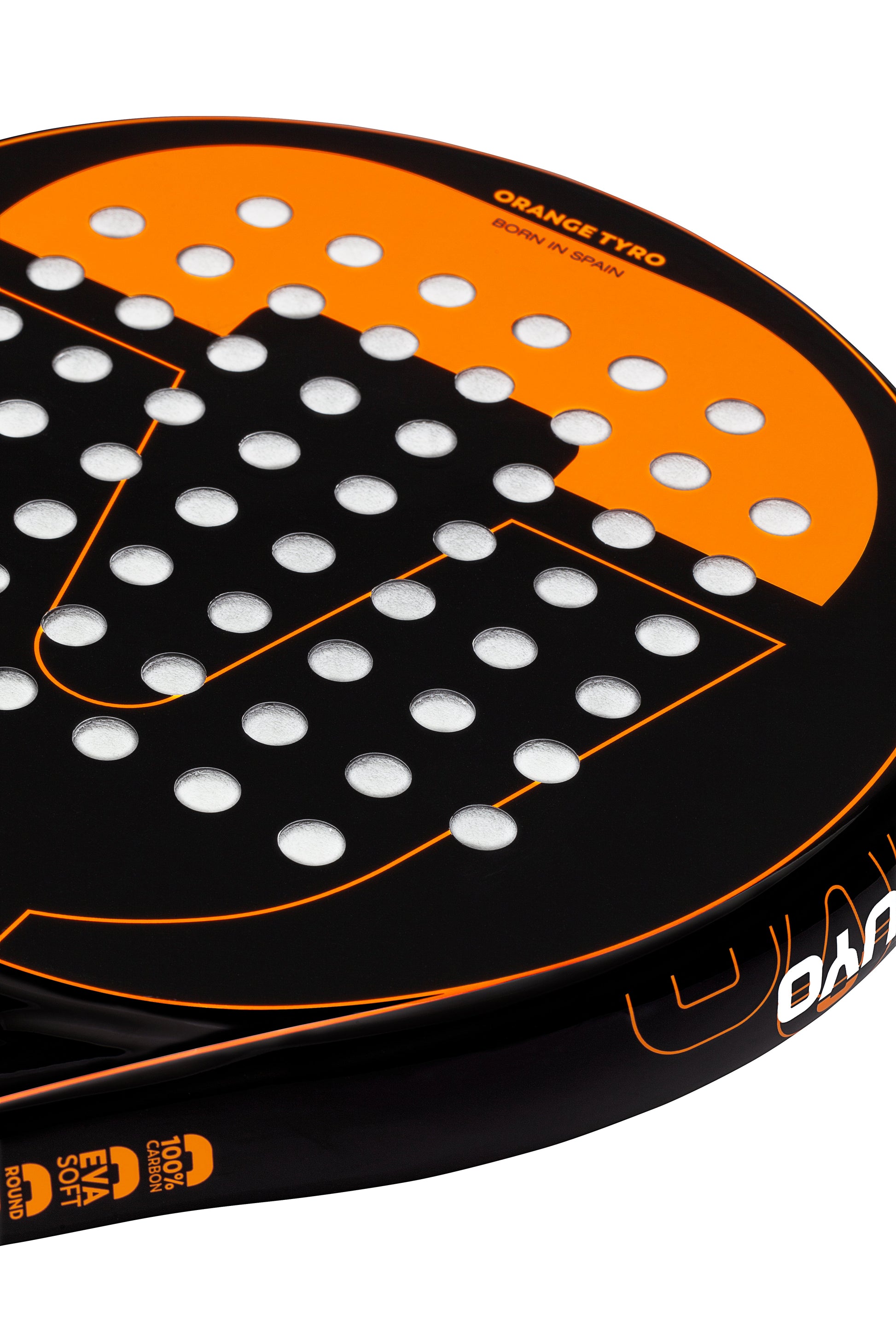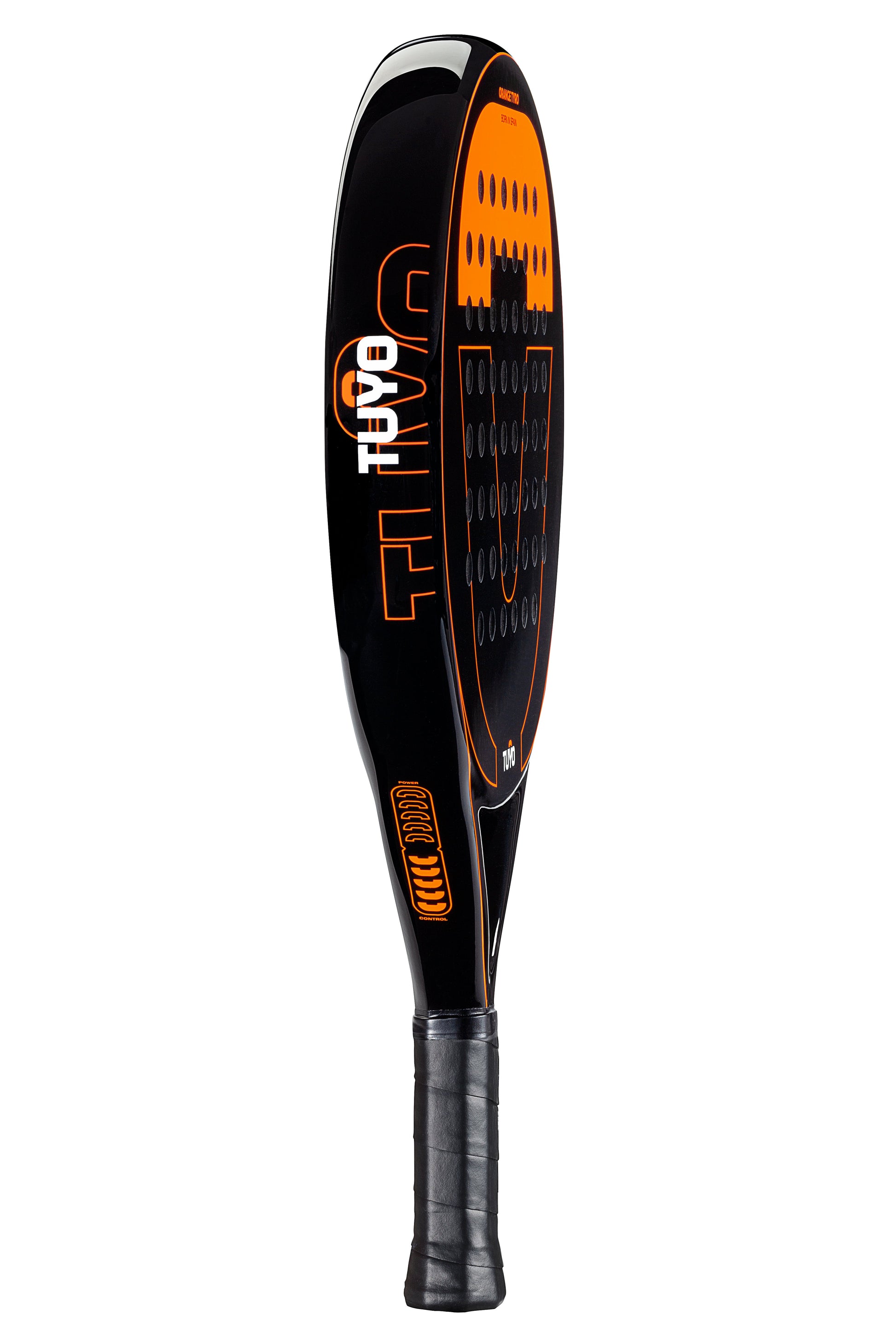 Just started padel? Then we have the perfect padel racket for you! Just look at the Orange Tyro. With no more than 350 grams, this round padel racket is one of the lightest in the TUYO collection. And not only a top racket for beginners. This lightweight among the padel rackets can also be used by the somewhat younger player. The round shape and the balance close to the handle provide optimal control over the ball. And because the Orange Tyro is filled with soft EVA foam, this padel racket has a large so-called 'sweet spot'. As a result, you don't always have to hit the ball exactly in the middle to make a good shot. TUYO's Orange Tyro is made of 100% carbon. That makes this orange beginner's racket light, sturdy and durable at the same time. All in all, the excellent padel racket to appear well equiped on the padel court