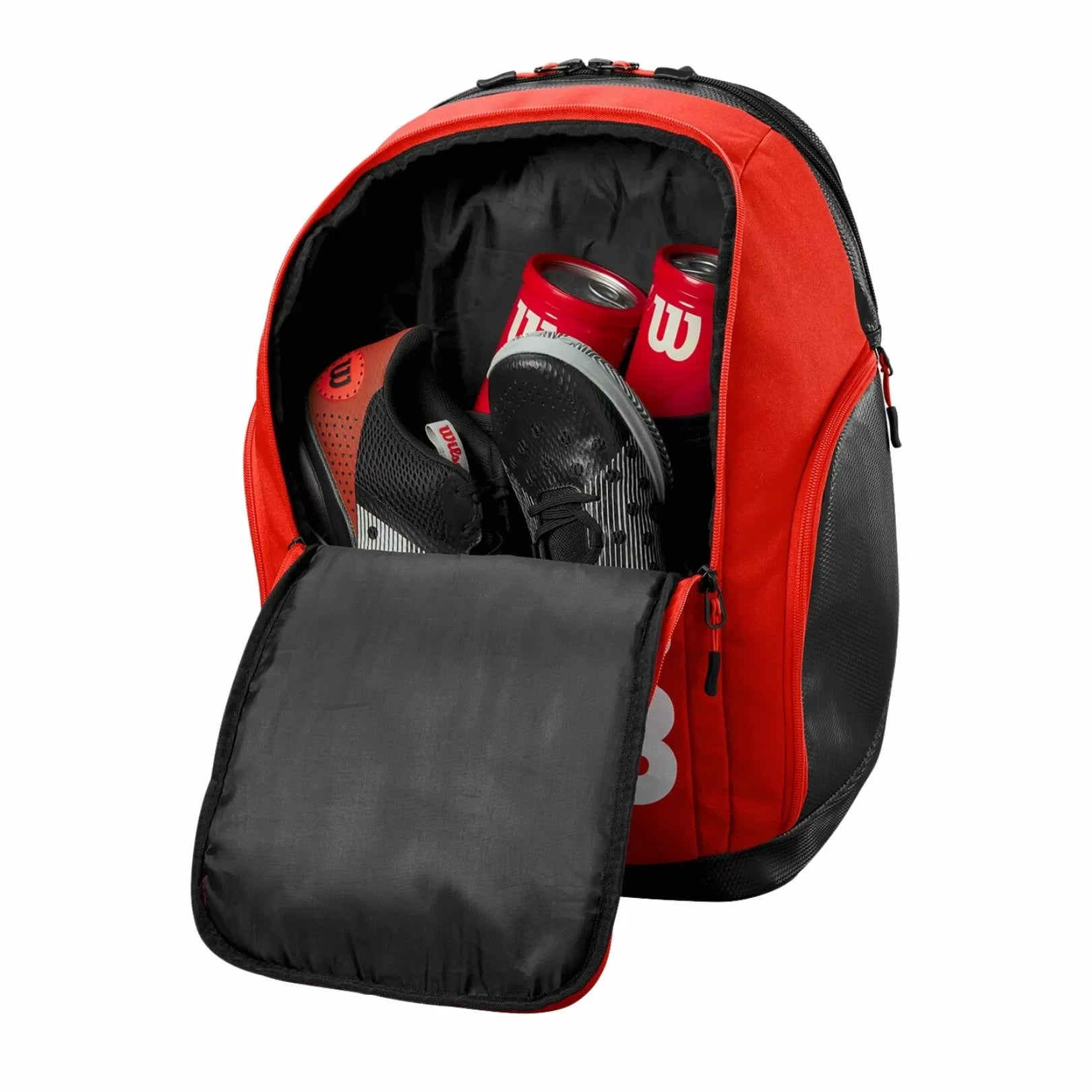 Compact, versatile backpack designed with classic Wilson red colors that holds all your padel must-haves.